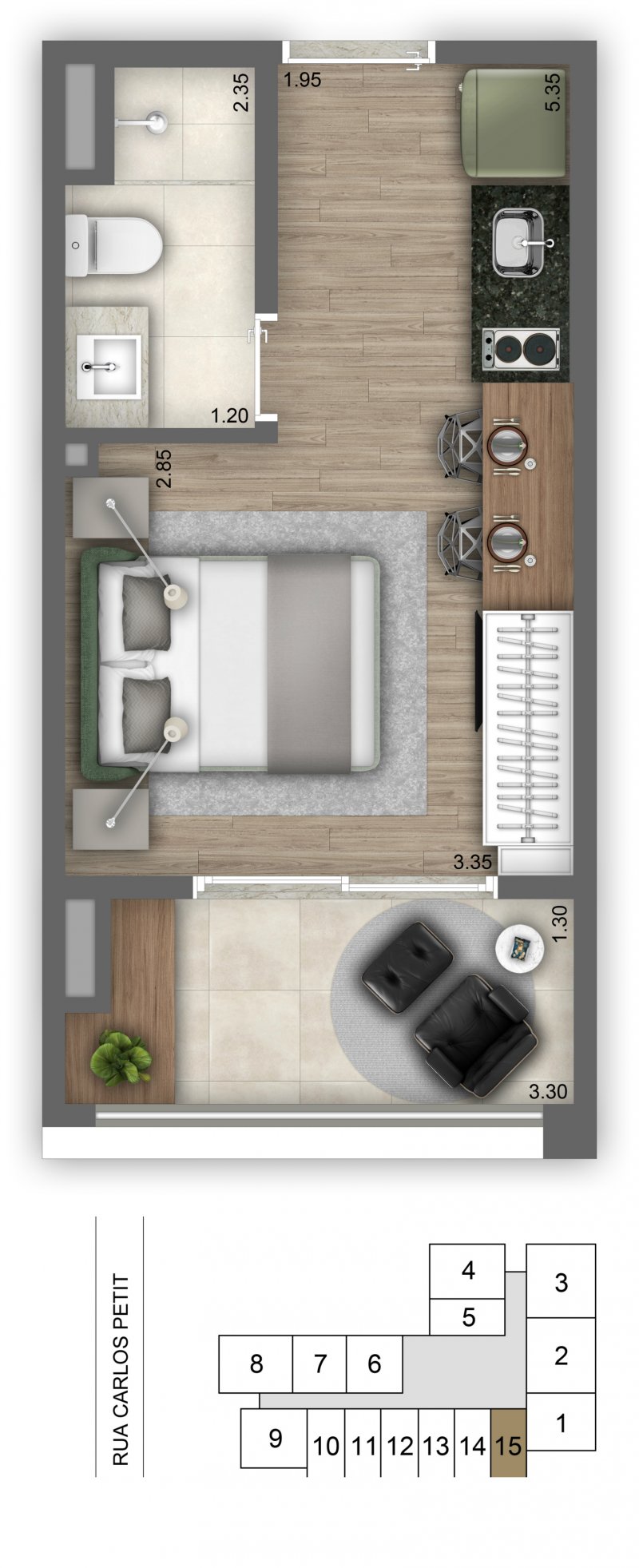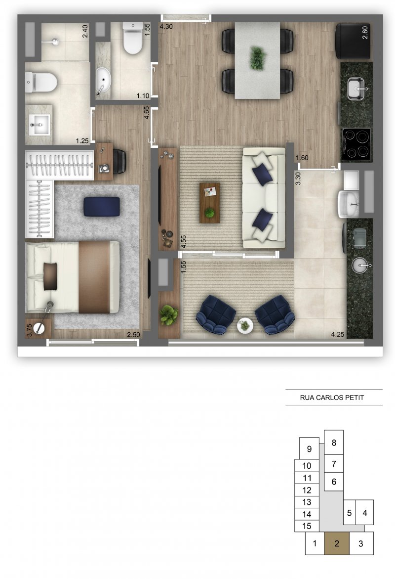 - Dormitórios1 Suítes1 Banheiros1