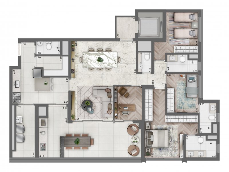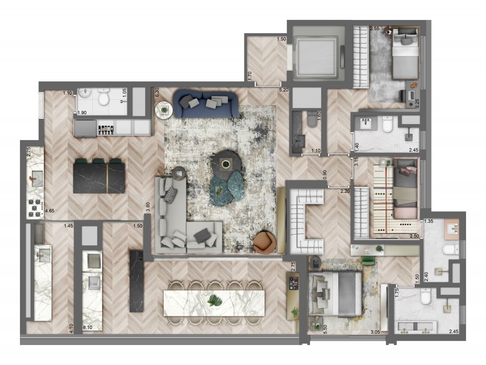 - Área Privativa: 158,50 m²
