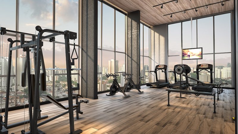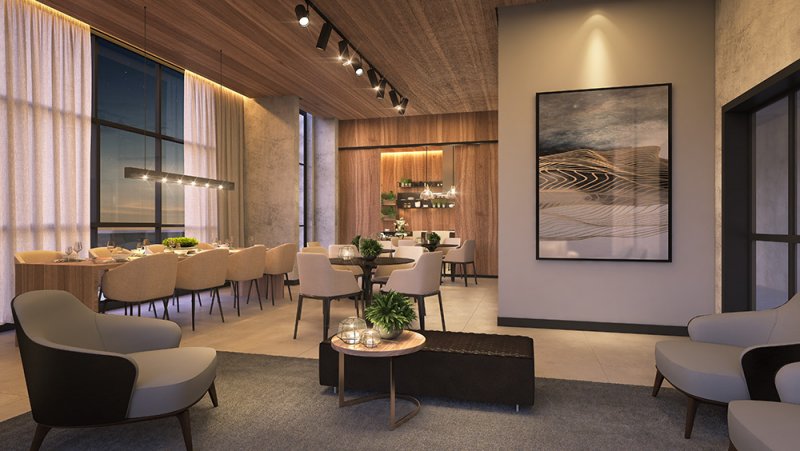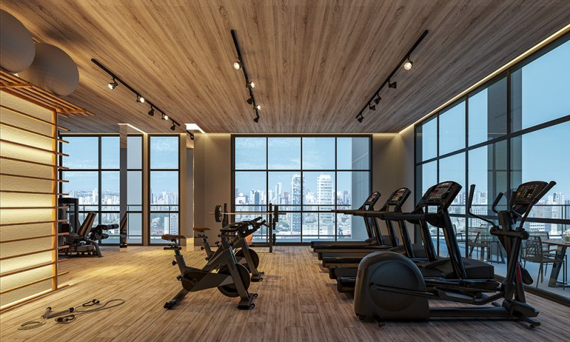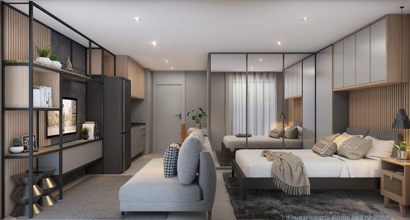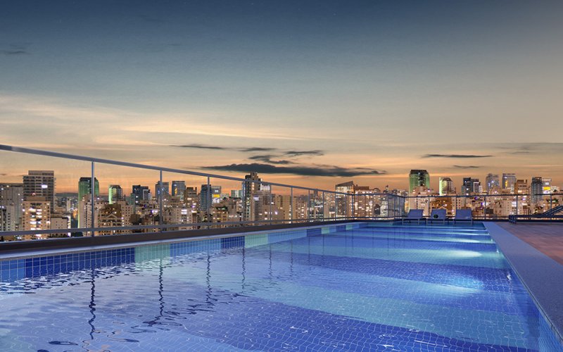 O lazer do projeto fica distribuídos entre térreo e Rooftop, e studios com lazer independente.
