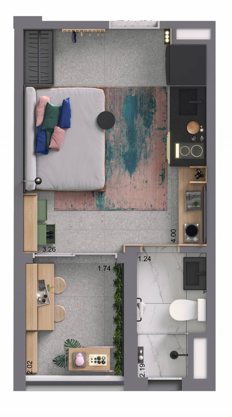 - Dormitórios1 Suítes1 Banheiros1