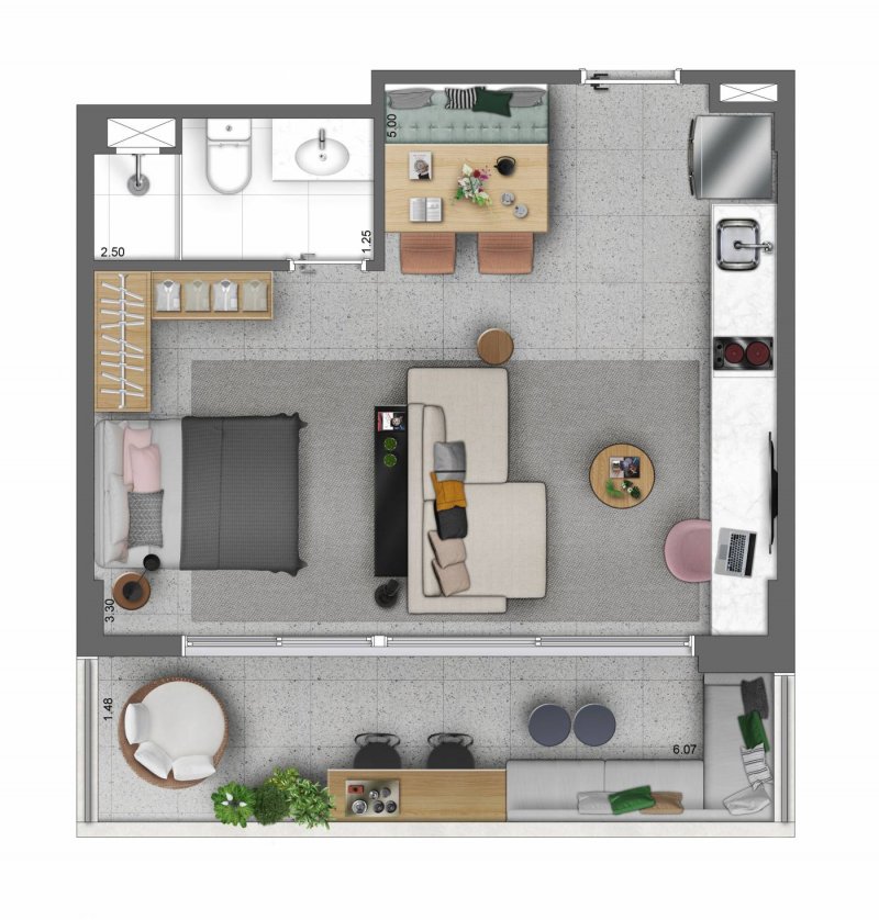 - Dormitórios1 Suítes1 Banheiros1