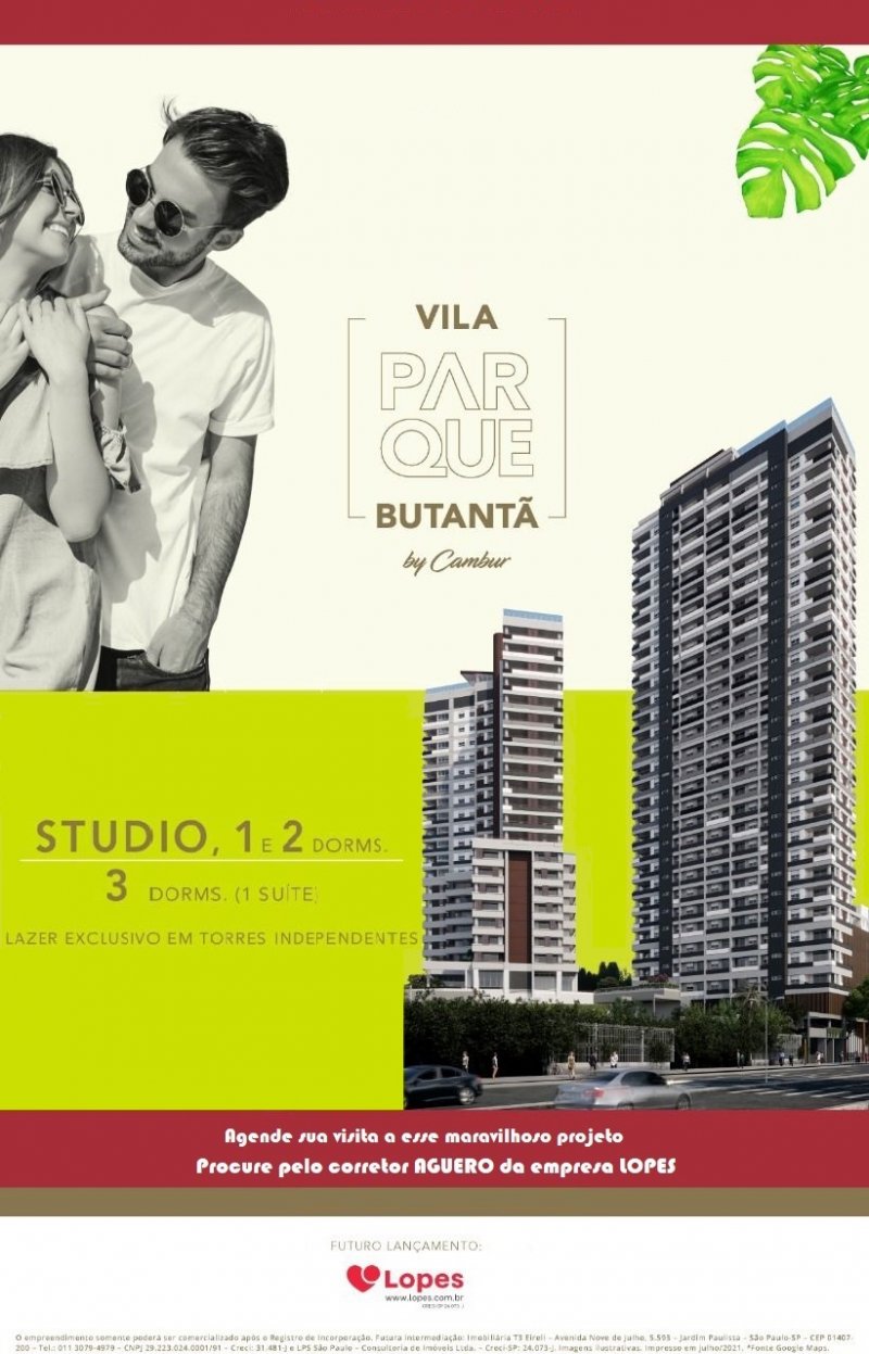 A Construtora CAMBUR, traz ao bairro do BUTANTÃ mais um projeto sem igual, com muitos diferenciais e qualidade, a Cambur traz o VILA PARQUE BUTANTÃ.