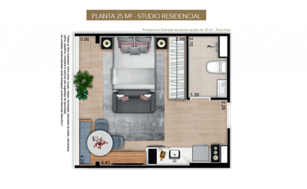 VILA PARQUE BUTANTÃ - TORRE VITAL: Já na torre Vital a Cambur irá oferecer apartamentos studios, 1 e 2 dormitórios com plantas de 25, 32 e 52 m², com um lazer bem amplo, e além disso opções de apartamentos 1 dormitório de 32 m² com vaga de garagem.