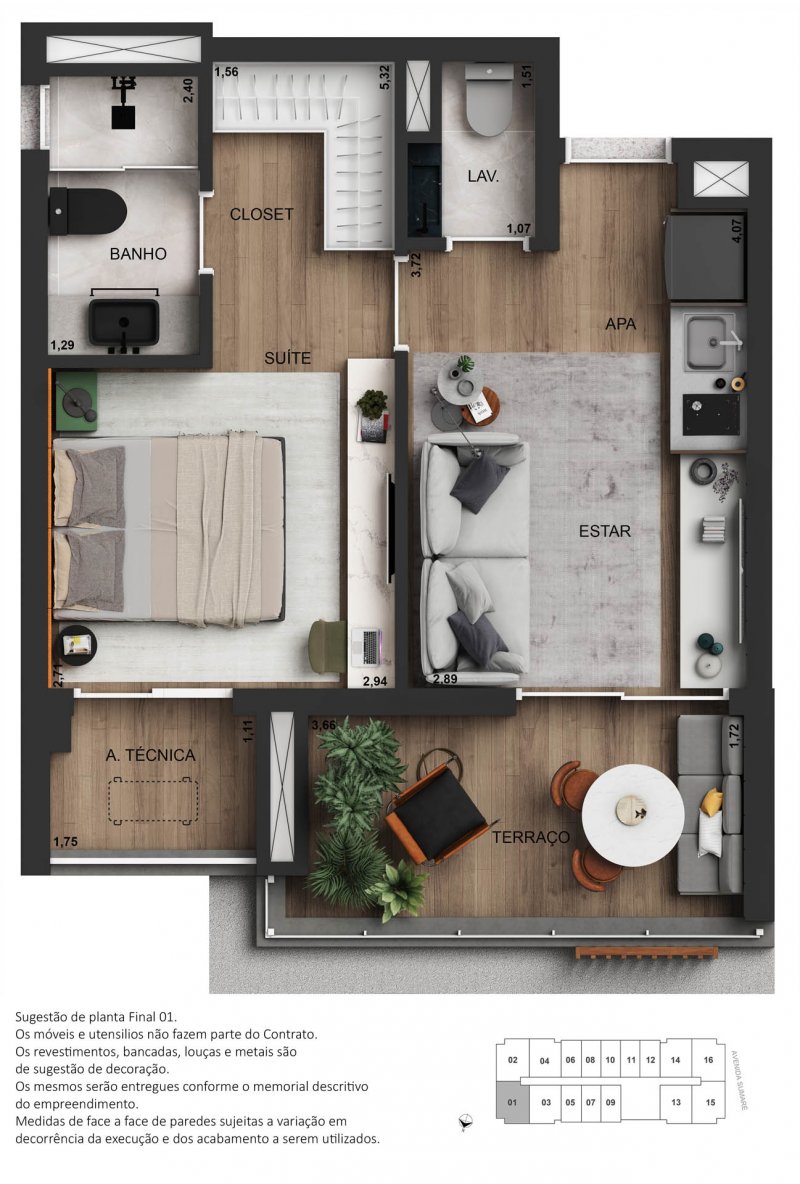 - Dormitórios1 Suítes1 Banheiros1