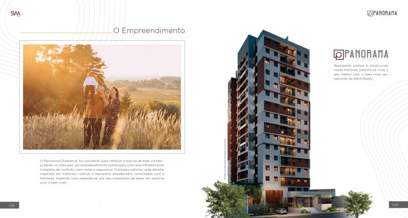 O Panorama Olivetanos oferece um projeto com muita comodidade, amplo lazer e acesso fácil as principais vias da região, além de tudo isso o projeto tem plantas de 46 m² ( 2 dormitórios ) 49 m², 50 m² e 58 m² ( 2 dormitórios com suíte ). Consulte opções gardem e Penthouse