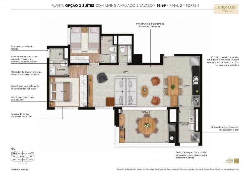 O mais novo LANÇAMENTO LANDMARK TATUAPÉ, tem excelentes opções de plantas, sendo apartamentos de 75 m² ( 2 dormitórios com 1 suíte ), 95 m² ( 3 dormitórios com 1 suite ou opção 2 suites ) e 119 m² ( 3 suites ). Além de excelentes plantas o projeto oferece um lazer incrivel para você e toda sua família.
