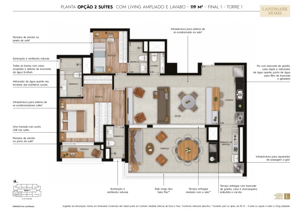 O mais novo LANÇAMENTO LANDMARK TATUAPÉ, tem excelentes opções de plantas, sendo apartamentos de 75 m² ( 2 dormitórios com 1 suíte ), 95 m² ( 3 dormitórios com 1 suite ou opção 2 suites ) e 119 m² ( 3 suites ). Além de excelentes plantas o projeto oferece um lazer incrivel para você e toda sua família.