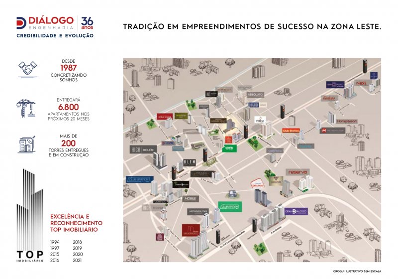 O Tatuapé é hoje a grande tendência para morar e investir em São Paulo. Tornou-se o ponto nobre da zona leste,e a referência máxima. A DIÁLOGO ENGENHARIA é grade responsavél por essa tendência, pois a muito tempo vem trazendo projetos que valorizam o bairro, e o LANDMARK TATUAPÉ é mais um exemplo, unindo o status de morar bem, a mobilidade urbana e o que há de melhor no entorno, além da logística de transportes perfeita, que integra Metrô/ CPTM (ao lado), grandes vias expressas e corredores de ônibus para todos os pontos da cidade. Landmark Tatuapé o lançamento mais marcante da Zona Leste espera por você!