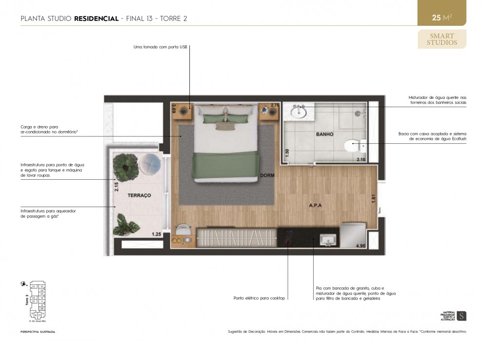 - Área Privativa: 25 m²