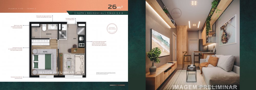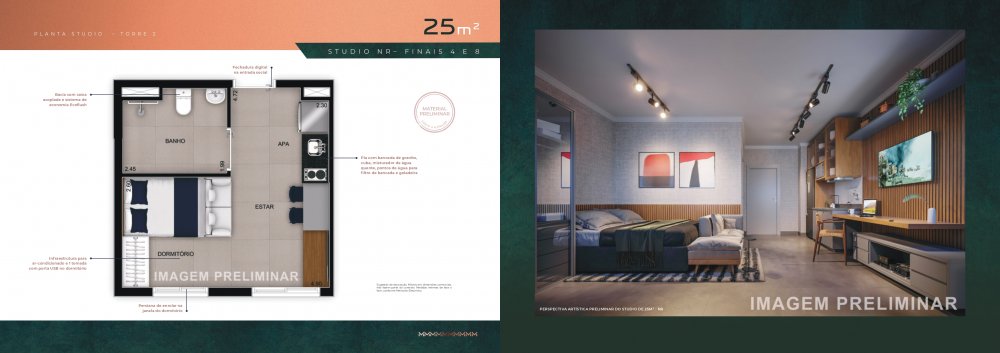 Além disso o The Address Mooca irá oferecer um outro complexo de apartamentos compactos que terá plantas de 25 a 67 m² sendo plantas de Studios, 1 dormitório e 2 dormitórios