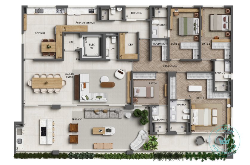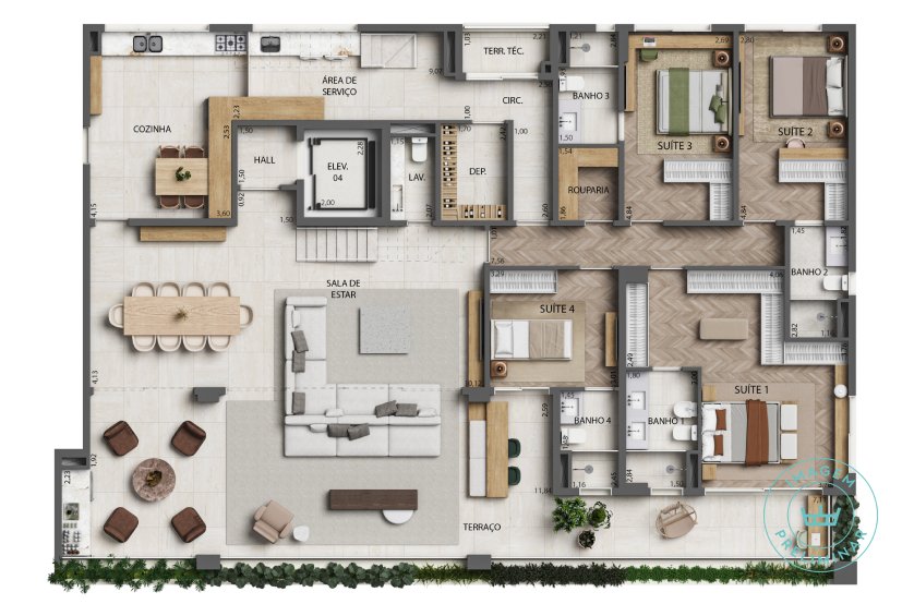 - Apartamentos 284 m² com opções de 3 u 4 suítes