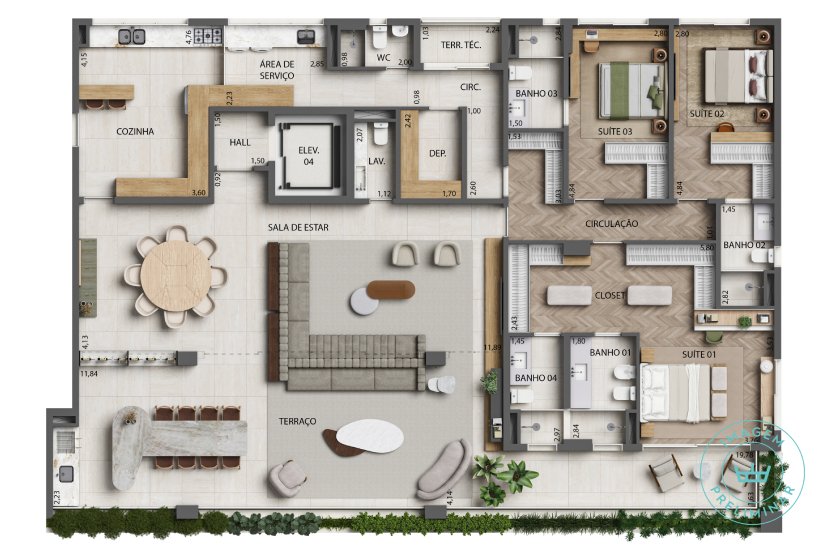 • Apartamentos 284 m² com opções de 3 u 4 suítes